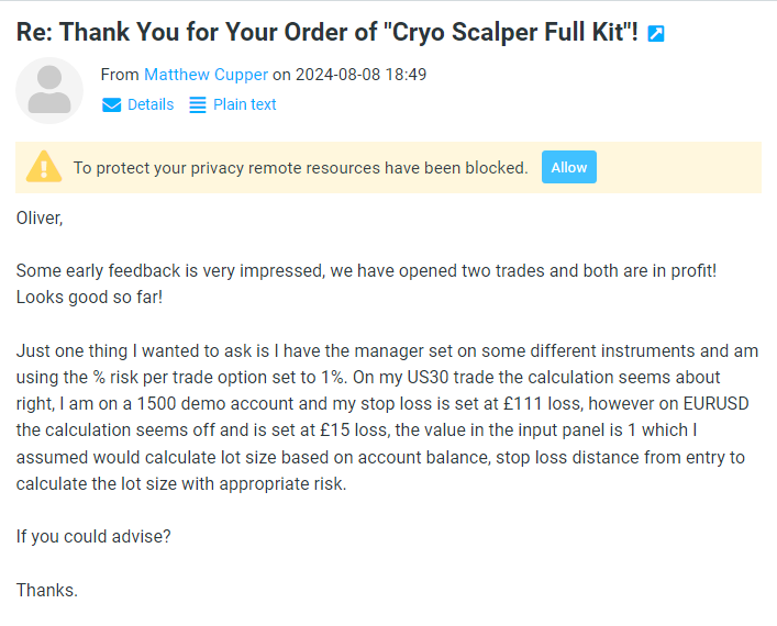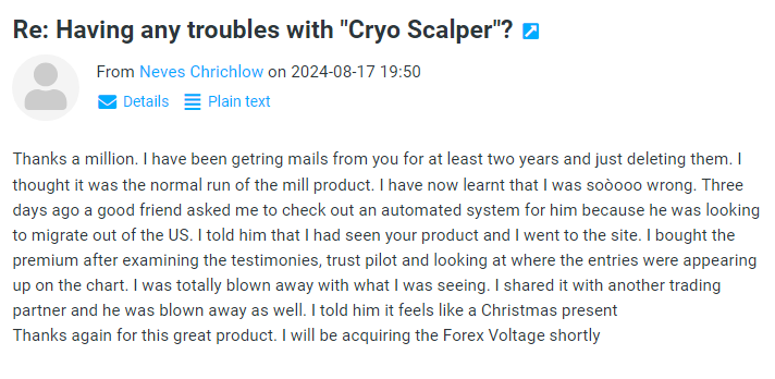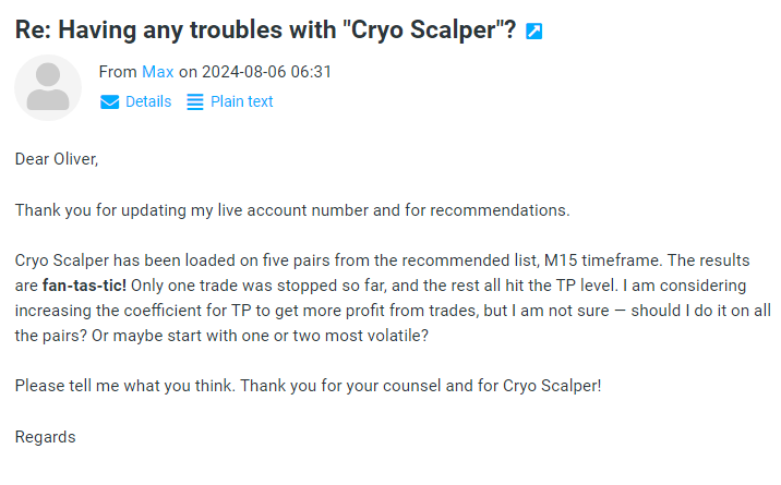 With your purchase of Cryo Scalper you understand and agree that the money-back guarantee for a 3-month package is valid within 1 day after the purchase and the money-back guarantee for a life-time package is valid within 14 days after the purchase. Any refund requests after this period will be rejected. Our company reserves the right to ask customers to confirm their refund request. If the customer does not confirm it within 3 calendar days, then the refund request is considered as invalid and it is annulled. Customers, who have purchased Cryo Scalper for the second time, after they have already been refunded once, cannot be refunded again - since a second purchase of the product is made, we consider that the customer is happy with the product. Customers who got a subscription can cancel it anytime on Digistore24.com or by contacting us by email.