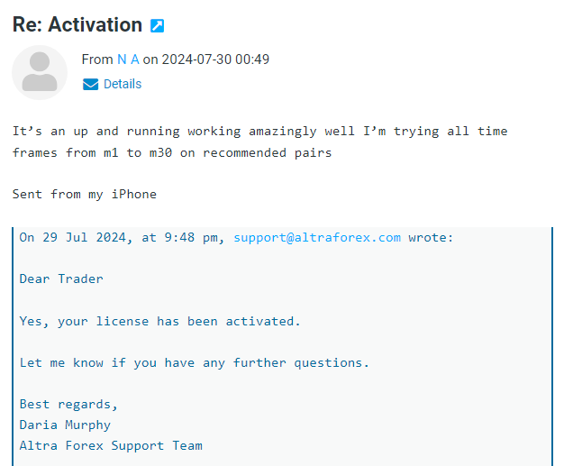 If you have any questions, please Contact Us via email: support@altraforex.com or olivermurphy@altraforex.com or via Telegram: https://t.me/olivermurphyDisclaimer U.S. Government Required Disclaimer – Trading foreign exchange on margin carries a high level of risk, and may not be suitable for all investors. The high degree of leverage can work against you as well as for you. Before deciding to invest in foreign exchange you should carefully consider your investment objectives, level of experience, and risk appetite. The possibility exists that you could sustain a loss of some or all of your initial investment and therefore you should not invest money that you cannot afford to lose. You should be aware of all the risks associated with foreign exchange trading, and seek advice from an independent financial advisor if you have any doubts. Clearly understand this: Information contained within this course is not an invitation to trade any specific investments. Trading requires risking money in pursuit of future gain. That is your decision. Do not risk any money you cannot afford to lose. This document does not take into account your own individual financial and personal circumstances. It is intended for educational purposes only and NOT as individual investment advice. Do not act on this without advice from your investment professional, who will verify what is suitable for your particular needs & circumstances. Failure to seek detailed professional personally tailored advice prior to acting could lead to you acting contrary to your own best interests & could lead to losses of capital. The products sold on this site include software for trading on forex markets (indicators) created by software developers. The Seller can be contacted at support@altraforex.com.